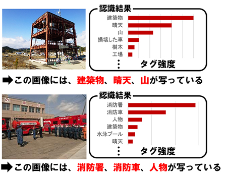 図は共に震災時に撮影された画像であり、タグ付け結果である。